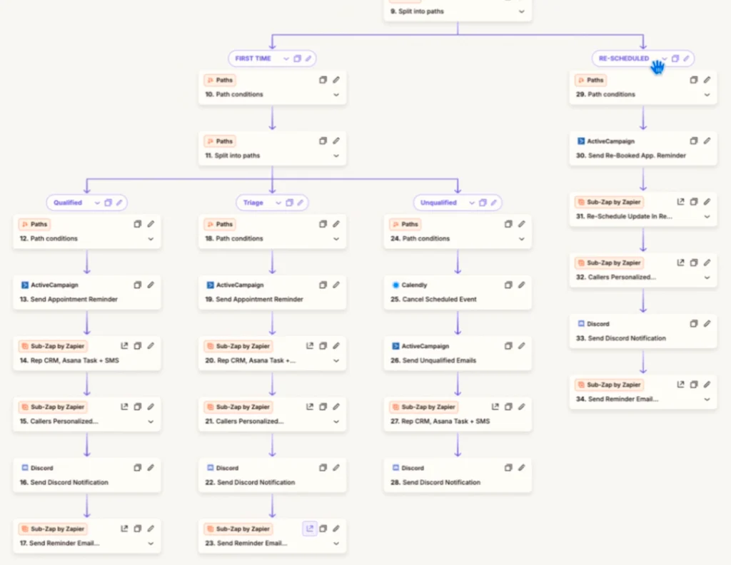 Booking systems, patient follow-ups, CRM pipelines.