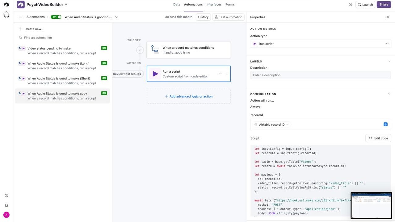 Also included analytics tracking to log published videos, track views, and plan future content based on performance.